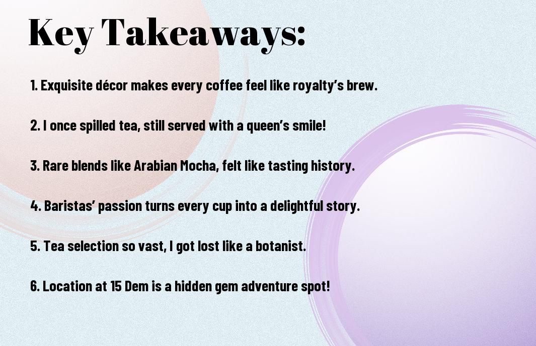 As I settled into my plush armchair, the ambience enveloped me like a warm hug. Soft golden lighting illuminates the space while the rich aroma of freshly brewed coffee dances through the air. I found myself wishing I could bring my entire living room here, but alas, it’s not exactly practical! The chandeliers gleam like diamonds, while the tasteful decor somehow enhances the coffee’s flavour. Whether I was indulging in a rich Brazilian roast or a floral Ethiopian blend, the stunning backdrop only intensified the experience. The atmosphere is not just coffee; it’s an experience that tickles your senses and makes you feel utterly pampered—ideal for both a catch-up with friends or a few moments of beautifully indulgent solitude.