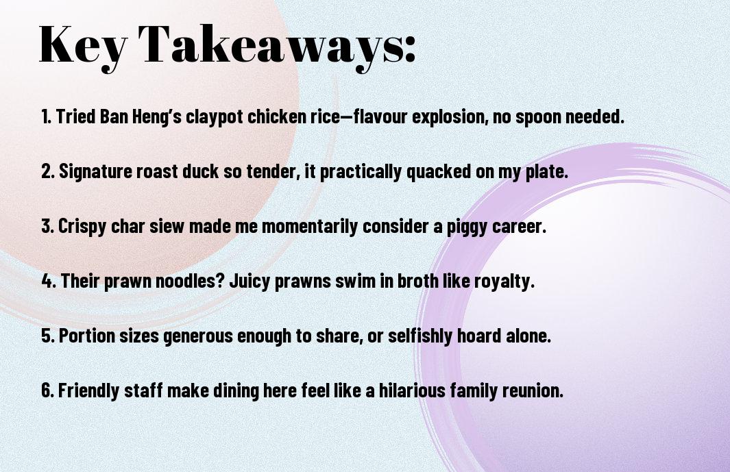 With forks ready and napkins tucked in, I ventured into the delightful chaos that is Ban Heng Restaurant, a culinary treasure boasting an array of signature dishes that might make you question your loyalty to your favourite takeout place. Every bite of their chilli crab, which splatters as joyfully as a toddler with a paintbrush, and the fragrant Hainanese chicken rice, clucked to perfection, is a rollercoaster of flavour. Join me as I relive the glorious moments (and a few misty-eyed food comas) that make this place a must-try!