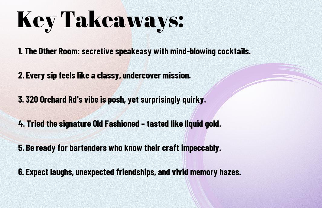 At The Other Room, I realised that sipping a cocktail isn’t just about the drink; it’s an art form steeped in social prowess. The trick lies in knowing when to swirl, when to sip, and when to engage in a spirited conversation about the latest cocktail trends – like the curious trend of whimsical garnishes that could probably double as headpieces if one dared!
