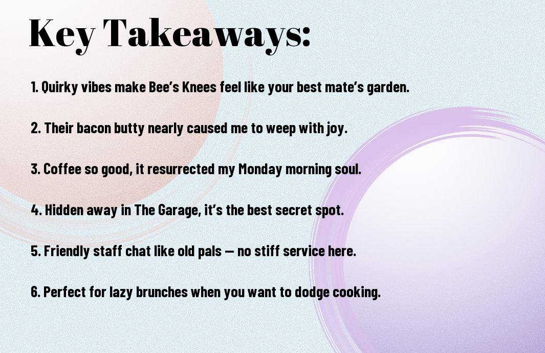 Assuming you’ve ever walked into a place and felt like you’ve stumbled into a warm embrace, that’s exactly how I felt stepping into Bee’s Knees. The inviting aroma of freshly brewed coffee wafted through the air, mingling delightfully with the scent of baked goods that could make even the most disciplined dieter weak at the knees. The decor was whimsically eclectic, making me feel as though I had crash-landed in a treasure trove of quirky finds and comforts. Just a heads up, you might want to grab a coffee before contemplating the menu—it’s dangerously delicious!