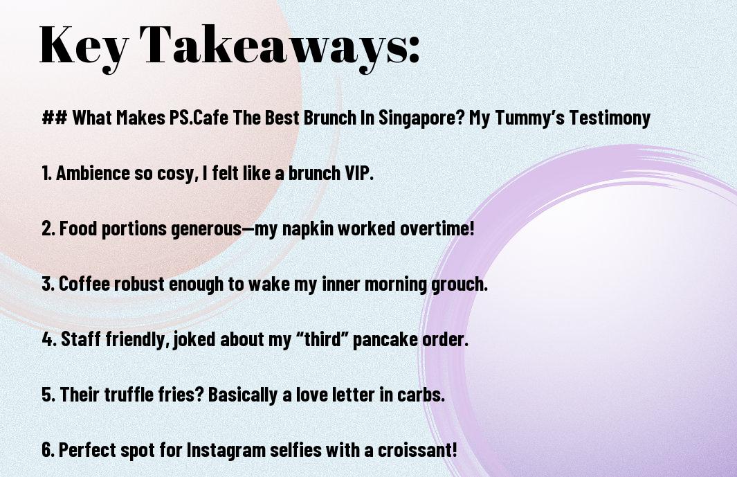 Summing up, my adventures at PS.Cafe have truly spoilt my brunching standards. From their heavenly truffle eggs to the lush ambience that makes you feel like you’ve stepped into a Pinterest board, it’s no wonder this place is often dubbed the best brunch in Singapore. I still find myself chuckling when I remember attempting to balance my latte with the infamous PS.Cafe chocolate cake—I’m fortunate that I didn’t get stuck! Every visit is a delightful culinary escape, and I can’t wait for my next indulgence there!