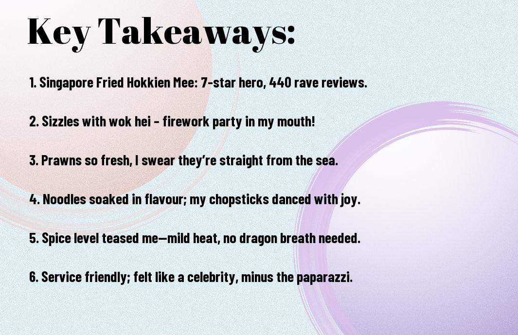 I’m talking about Kopitiam, my friends! If you’re on the hunt for the most satisfying Hokkien Mee in Singapore, grab your chopsticks and buckle up. I’ve slurped my way through countless bowls, and trust me, some were as memorable as a bad karaoke night. Let’s examine my top picks, which range from prawns that could win a beauty contest to noodles so slippery they could escape my grasp!