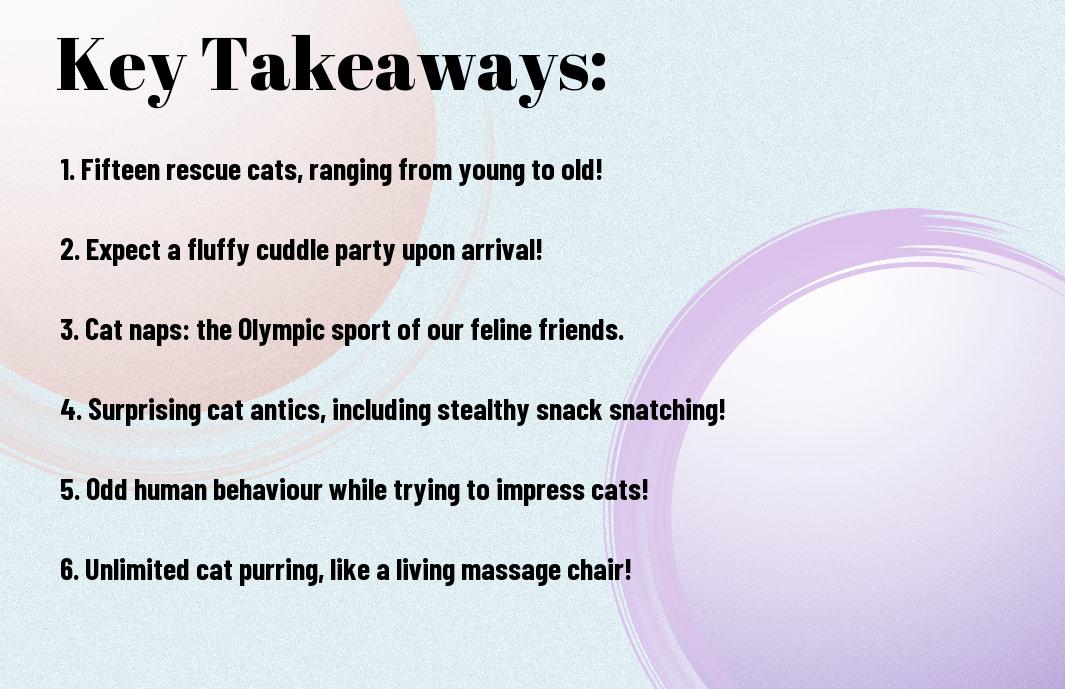 I’ve encountered unforgettable moments at the Cat Café. Just the other day, I was enjoying a quiet coffee when one of the older cats, named Mr Whiskers, decided to leap onto my table, sending my biscuit flying! Who knew a 17-year-old could still have such spry moves? It’s these delightful surprises that make every visit memorable.
