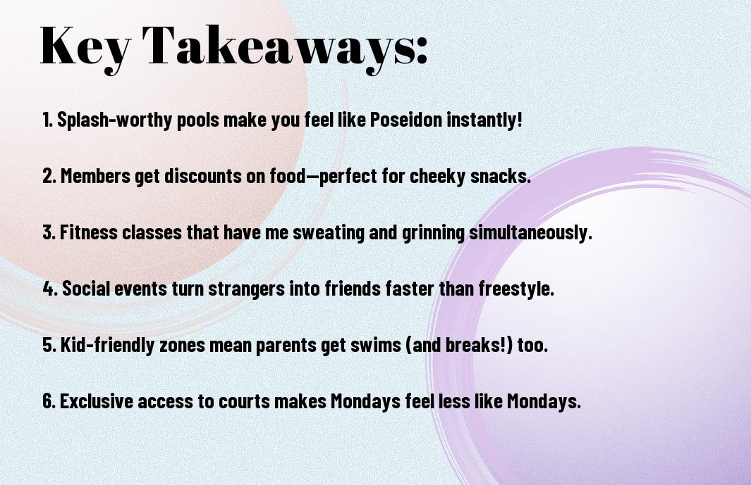 You’d think an exclusive swimming club would be a financial drain, but that’s where you’d be pleasantly mistaken! The perks often far outweigh the costs, especially when you take advantage of regular events and workshops. Last month, I enjoyed a sushi-making class (seriously, who knew I could roll sushi as well as I roll in the pool?), and it was included in my membership, saving me a lovely sum compared to those pricey culinary classes elsewhere!