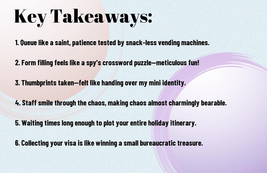 This lack of warmth felt almost comical in a way. I half-expected to see a sign saying, “Smile, you’re on camera!” while realising that the staff members were simply doing their jobs amidst a sea of paperwork. Someone behind me muttered a quip about needing a hug before even getting their visa, eliciting a ripple of chuckles in the queue. Somewhere between my nerves and the staff’s efficiency, I managed to share a few light-hearted jests, all the while wondering if they’d allow applicants to bribe them with biscuits to boost morale. Ultimately, I maintained a positive attitude, looking forward to more amiable interactions as I progressed through the process.