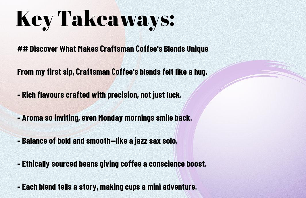 Coffee is not just a beverage; it’s an adventure in a cup, especially when it comes to Craftsman Coffee. Having sampled their blends during my many early morning escapades, I can assure you that each sip feels like a warm hug from a well-seasoned barista. From discovering the nutty richness in their “Balanced Brew” to nearly falling off my chair from the intensity of their “Dark Delight,” these unique blends have turned my coffee routine into a delightful rollercoaster. So, let’s explore what makes Craftsman Coffee’s blends truly special!