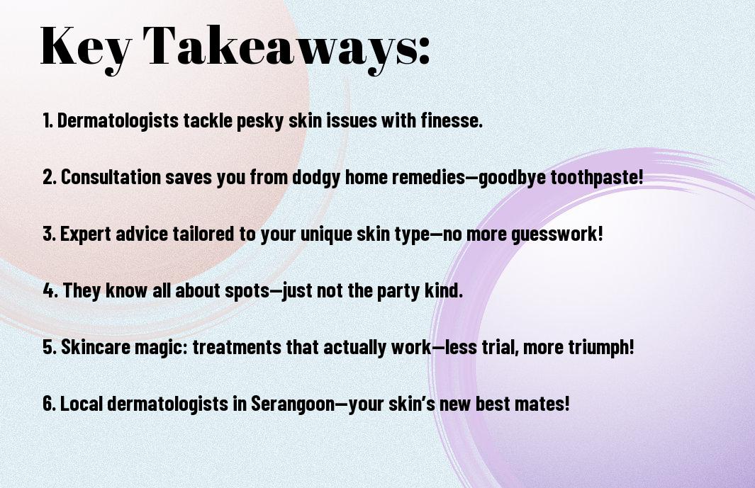 Drawing together my experiences, I can confidently say that a dermatologist near Serangoon can indeed work wonders for your skin! I once visited Dr Chan Yuin Chew, and let me tell you, my face went from a red, blotchy fright to a smooth canvas fit for a royal portrait. I still chuckle at my past skincare mishaps, like the infamous ‘clown face’ incident with a rogue face mask! So, if you’re pondering whether to seek help, just picture your skin’s potential glory — it might be the best decision you ever make!