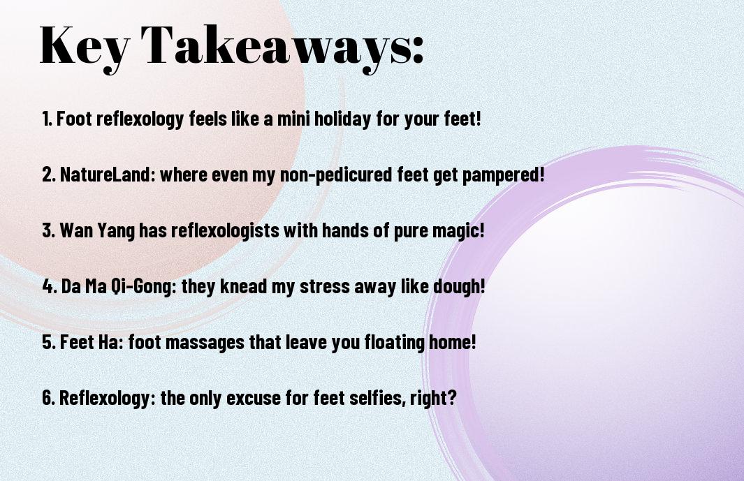 So, after indulging in foot reflexology at places like NatureLand and Da Ma Qi-Gong, I’ve realised these massages are pure bliss! You wouldn’t believe the tension that melts away after a 60-minute session; it’s like having your feet attended to by little miracle workers—seriously! I mean, who knew my toes held so much pressure? And as for the unique atmosphere, it’s typically tranquil, almost so peaceful I started snoozing and dreaming of exotic locations (possibly under a palm tree). If you haven’t tried it yet, your feet will be forever grateful!