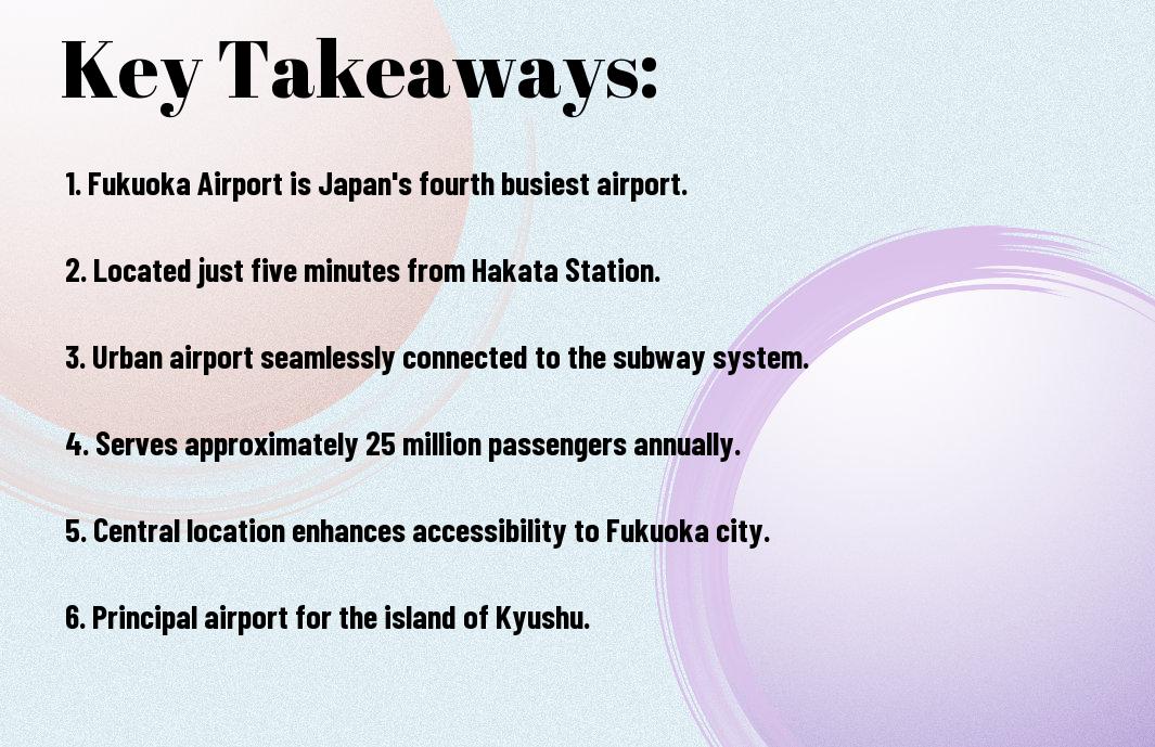 As you approach Fukuoka Airport, you’ll quickly realise what makes it such a gem amongst the airports in Japan. This vibrant gateway is not only significant for its role in air travel but also for its striking urban location that sets it apart. You’ll find that Fukuoka Airport (福岡空港, Fukuoka Kūkō) is nestled right in the heart of the city, making it incredibly convenient for travellers from all walks of life.