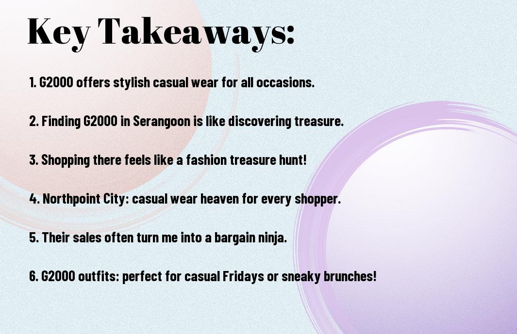 Assuming you’re like me and enjoy a bit of creativity, mixing and matching from G2000’s collection can lead to some delightful surprises. Who knew that a formal shirt could look downright rebellious when paired with my favourite ripped jeans? It’s like each item has its own personality that I tap into, creating outfits that not only reflect my mood but also keep the oohs and aahs coming from my friends!