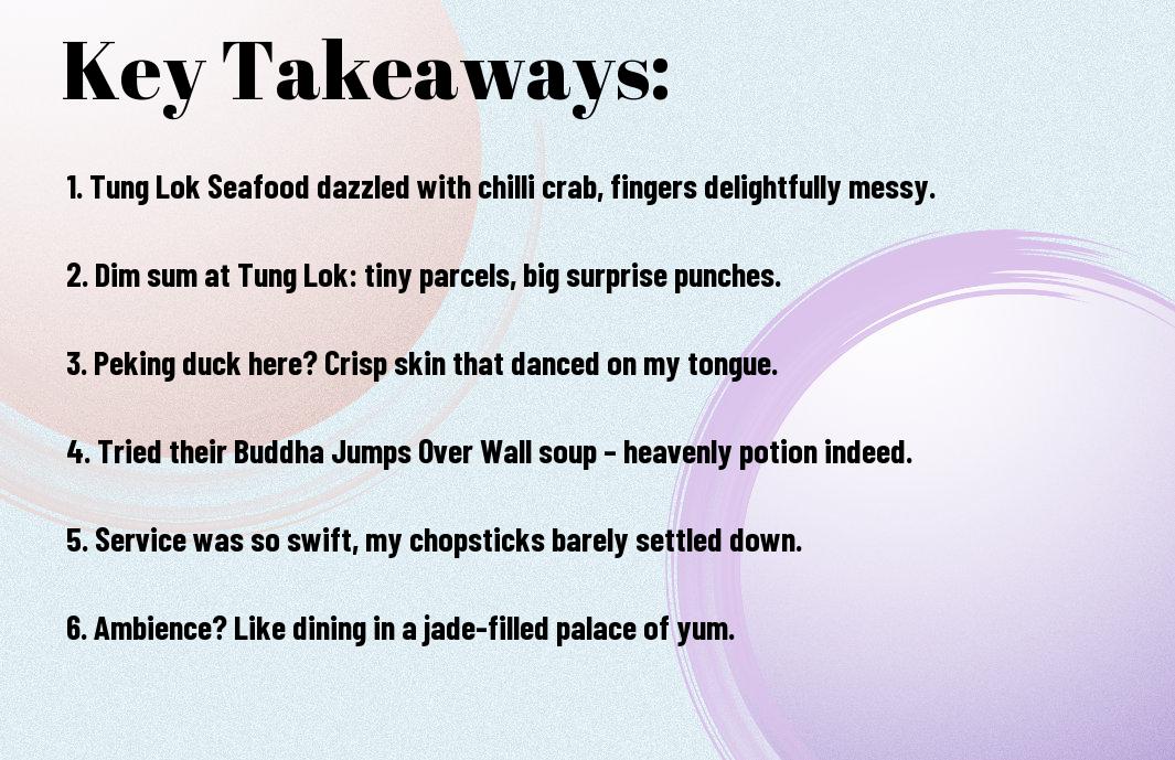 To wrap up, exploring the delightful Chinese restaurants in Singapore has been a culinary adventure I never knew I needed. I must say, I still chuckle at the time I ordered a whole crab at Tung Lok Seafood and realised I was way over my head—like trying to wrestle with my ex’s cooking skills! Between the mouthwatering dim sum and the delightful stir-fries, your taste buds will be thanking you. Don’t hesitate to explore this vibrant food scene; it’s sure to leave you smiling, if not a bit overstuffed!