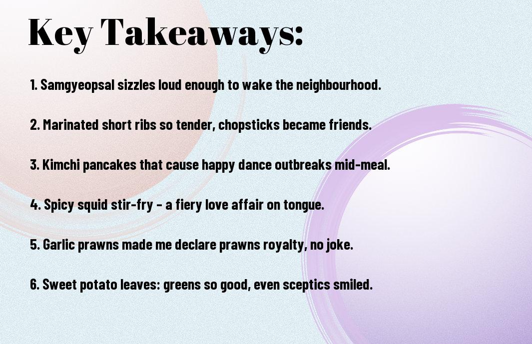 A: Ah, the main attraction of Guiga Korean BBQ! Their signature dishes truly deserve the spotlight. You can’t start without trying the marinated beef short ribs (galbi). They are so tender that they practically melt in your mouth! I was enchanted by their flavours, and I may or may not have forgotten about my utensils and just used my hands! It was quite a sight, but it was worth every messy moment. And let’s not overlook the Spicy Pork Belly; it’s sweet, spicy, and sizzles away on the grill like it’s having a party. Prepare yourself, as those succulent morsels could potentially undermine your determination to share with your friends!n With a wonderful selection of banchan to complement, you’ll find yourself questioning the sanity of sharing these delights.