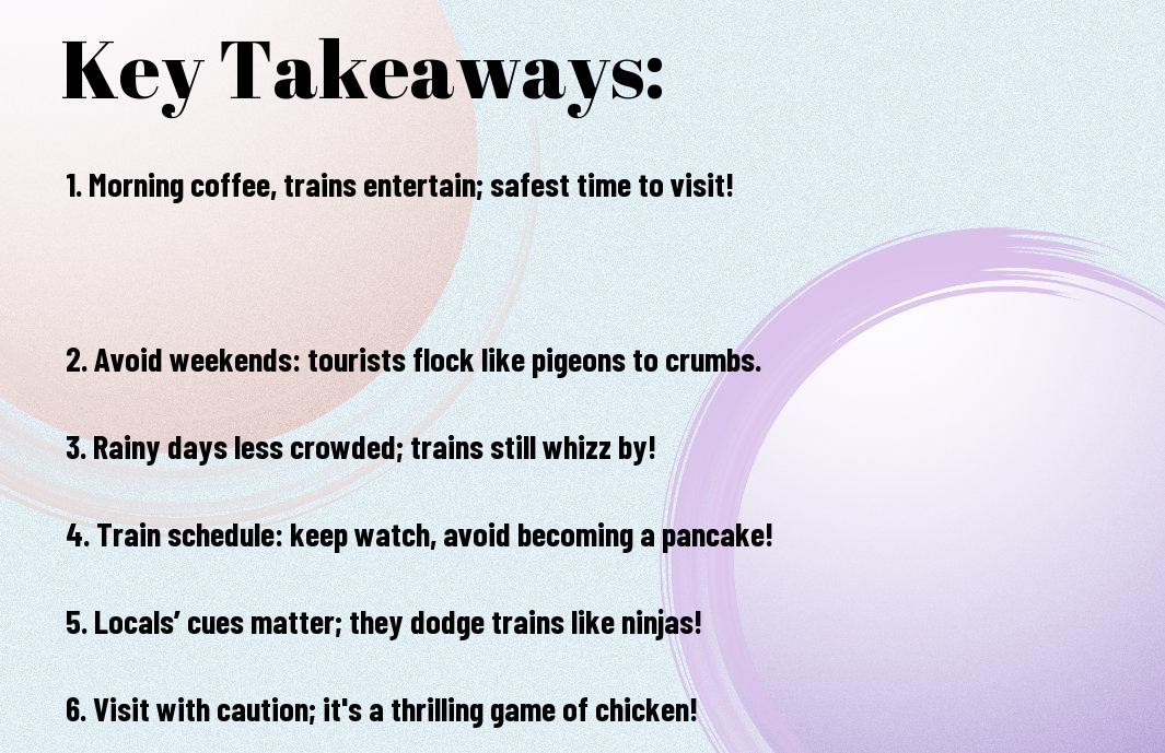 Most travellers, including myself, experience a mix of thrill and panic while visiting Hanoi Train Street, a peculiar place where trains whizz by just a hair’s breadth from everyday life. I recall a time I was sipping coffee, and suddenly a loud horn blared, causing a chain reaction of sprightly locals darting in every direction—it was like a scene from an action film! In this post, I’ll share my experiences and a few tips on when it’s safest to stroll down this exhilarating street, so you can avoid becoming part of the rush hour drama!