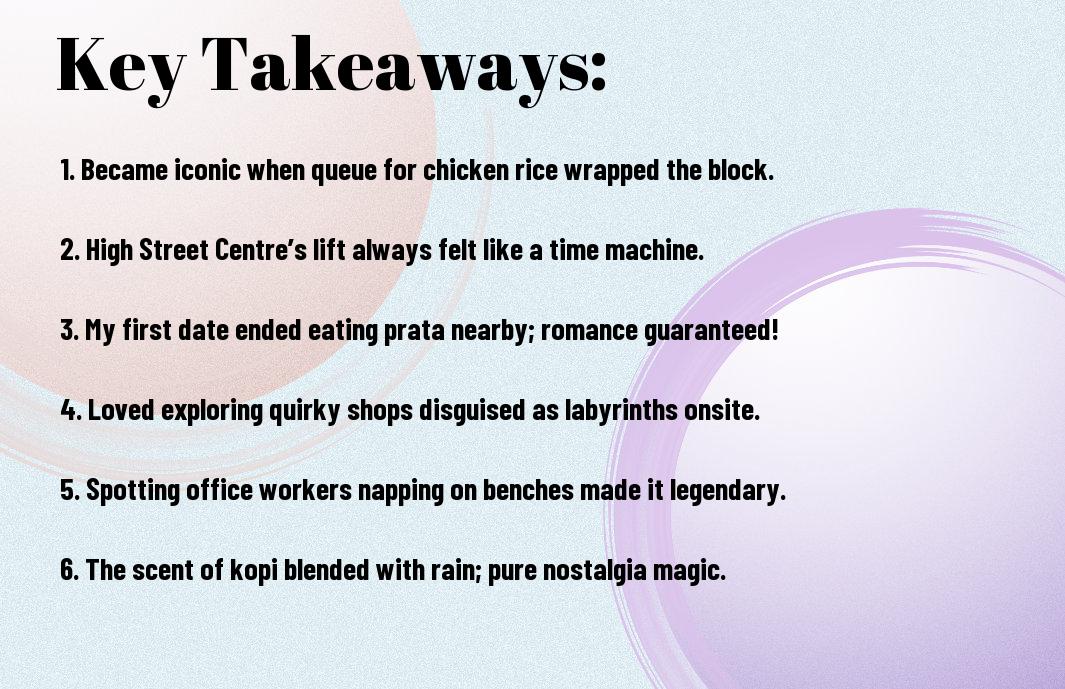 Many delightful cultural experiences await you at High Street Centre, making it a vibrant hub of activity. From art exhibitions to various festivals, this place truly embodies Singapore’s multicultural spirit. I have found myself attending everything from food fairs showcasing scrumptious local dishes to cultural celebrations that left me both educated and entertained. The mélange of sights, sounds and flavours is enough to whet anyone’s appetite for exploration!
