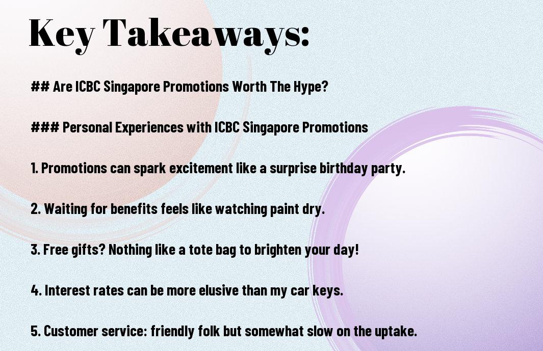 Unlike the free buffet at my cousin’s wedding, ICBC Singapore promotions have their highs and lows. While some offers are as enticing as a coupon for a cheeky pint, others might leave you feeling a bit short-changed. It’s all about weighing the benefits against the drawbacks to find what suits you best!