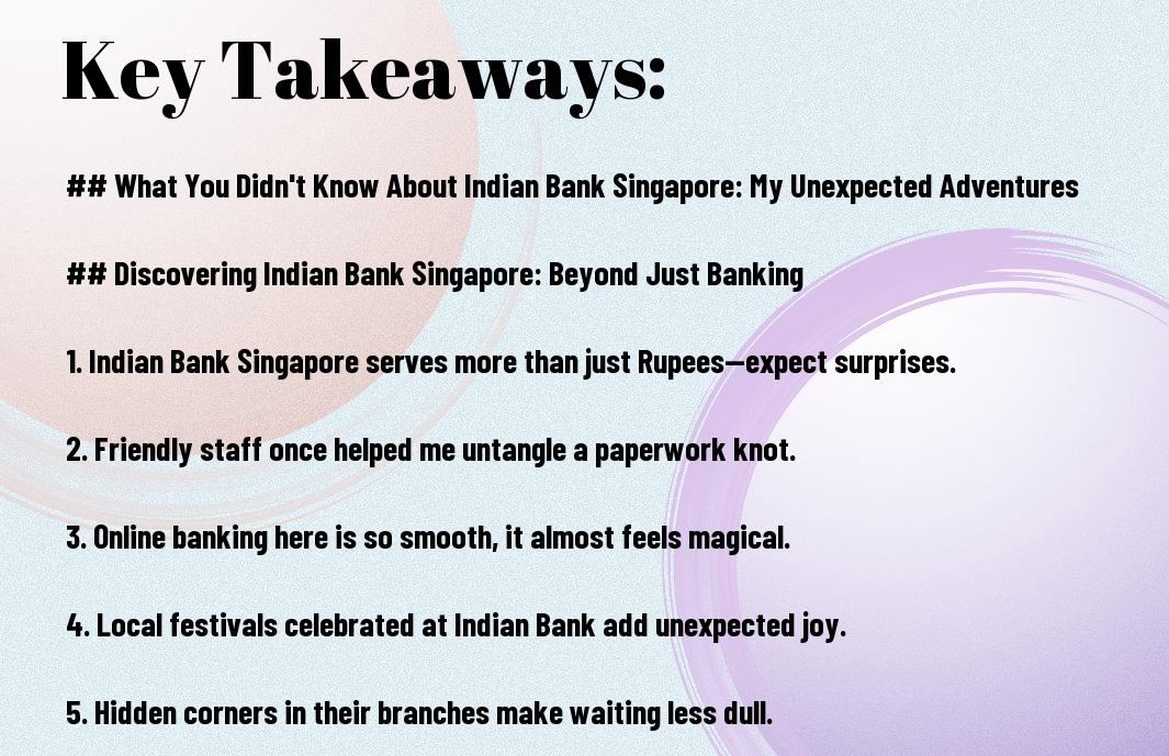 You might assume that Indian Bank in Singapore is just another bank vying for your business. However, this institution is filled with quirky facts and a unique flavour that you wouldn’t expect. Here’s what I’ve discovered through my own amusing adventures with Indian Bank Singapore, complete with a sprinkle of mirth: