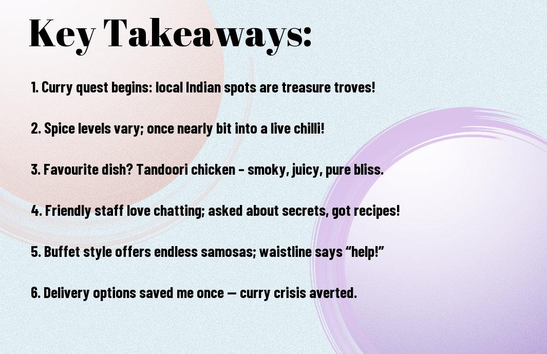 Now, after my culinary adventures hunting for Indian food near me, I realise there’s more than just curry and naan to discover! From dodgy takeaways to hidden gems serving the best samosas, I’ve dabbled. Once, I ordered a curry so spicy it could fuel a small rocket! But those moments of flavourful joy and culinary chaos always leave me grinning. Next time you’re craving some spicy tikka, take a little trip around your area; you might just stumble upon a delightful surprise. Happy feasting!