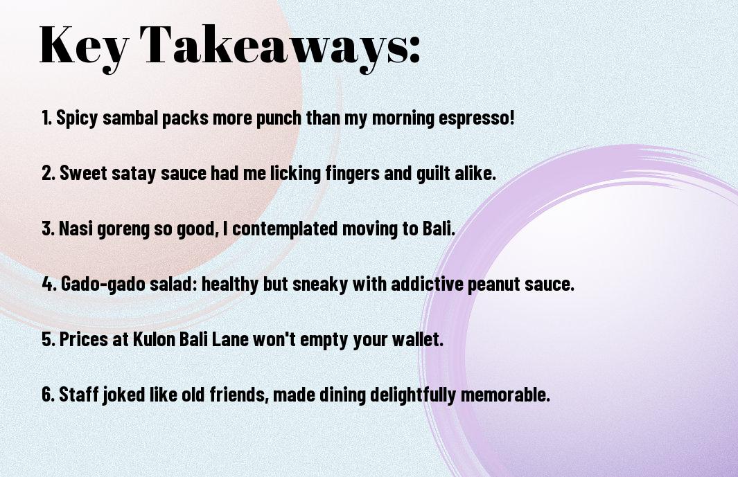 <p>“Best Indonesian food this side of Jakarta!” said a fellow diner while lip-synching to the sound of sizzling sate. The kind of enthusiasm I only usually see when someone mentions chocolate cake! With each rave review, I felt a sense of camaraderie with these fellow food lovers, knowing we’d stumbled onto a hidden gem. It’s as if Kulon 30 Bali Lane has cast a spell—once you’ve had a taste, you’re hooked for life!