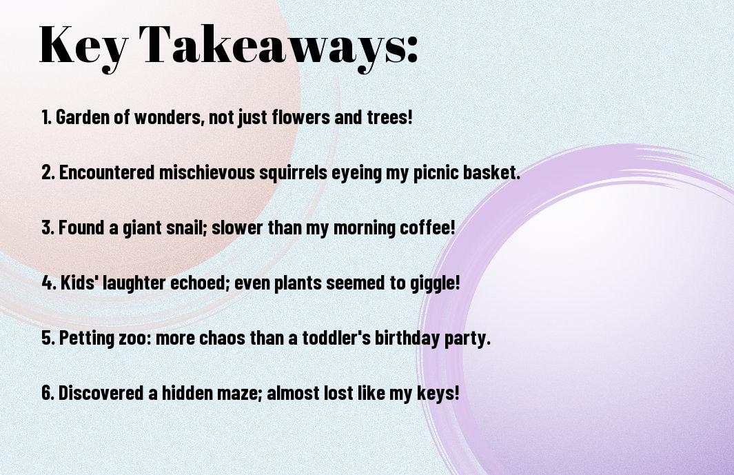 Wandering through the Jacob Ballas Children’s Garden is utterly delightful, especially when you discover some rather peculiar delights. Picture me trying to explain to a seven-year-old why the giant mushroom sculpture doesn’t actually sprout pizza! As I navigated through mazes of greenery, I found myself chuckling at a mini waterslide that I was way too big for, leading to a splash zone perfect for mischievous toddlers. Join me as I recount these amusing escapades in Asia’s first garden dedicated to children, where the adventure is limitless and laughter is the norm.