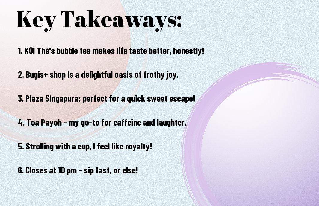 Bugis is renowned for its vibrancy, and the late-night energy at KOI Thé is contagious. The buzz of chattering friends and the laughter of fellow bubble tea enthusiasts make the experience even more enjoyable. When you find yourself in need of a sugar fix, why not take a stroll to KOI Thé? Trust me, whether you’re hunting for the best toppings or just seeking solace in a sweet beverage, this spot is the perfect answer to your night-time cravings!