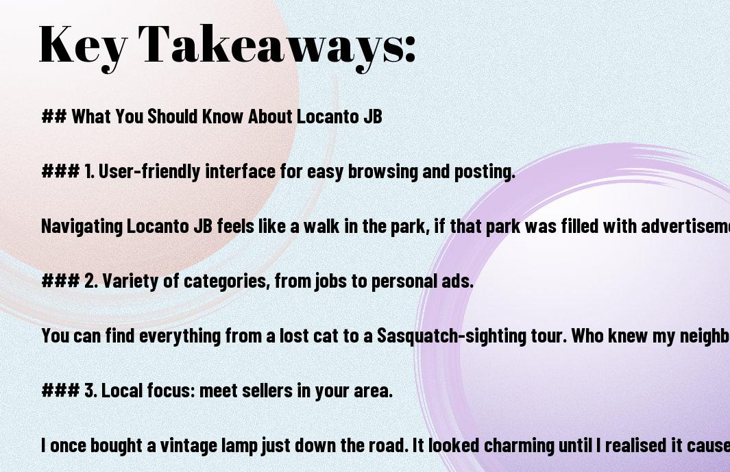For anyone new to this concept, Locanto JB offers a user-friendly interface where you can browse various categories, from jobs and real estate to personal ads and services. You can easily post your listings for free, making it a popular choice for savvy bargain hunters and sellers alike. I’ve certainly found a few hidden gems myself!