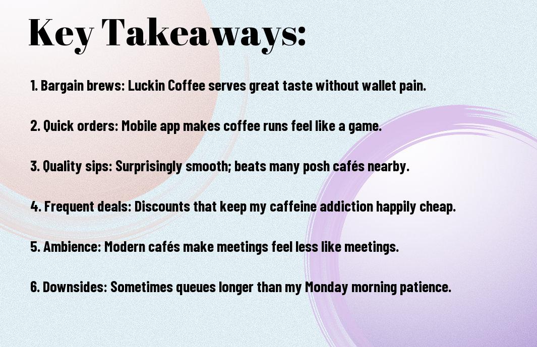 Most coffee lovers are always on the hunt for that perfect brew without breaking the bank, and that’s where my adventures with Luckin Coffee begin! Picture this: me, bleary-eyed and clutching my phone, wrestling with the app to snag a bargain one Tuesday morning. Let me tell you, the deals are as steep as the caffeine levels—just a tad less life-threatening. With their freshly brewed delights at a fraction of the cost, I wondered if I’d discovered the holy grail of coffee. Join me as I reveal whether Luckin Coffee truly offers the best value for your money!
