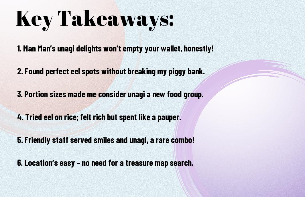 Finding a delightful meal that doesn’t empty your wallet can feel like trying to locate a unicorn in a busy city. But at Man Man Japanese Unagi Restaurant, I discovered not only the mythical creature but a whole troop of them! The prices are surprisingly reasonable, especially considering the quality of the unagi. You can indulge in a full meal without feeling like you’ve just adopted a pet goldfish to pay for it!