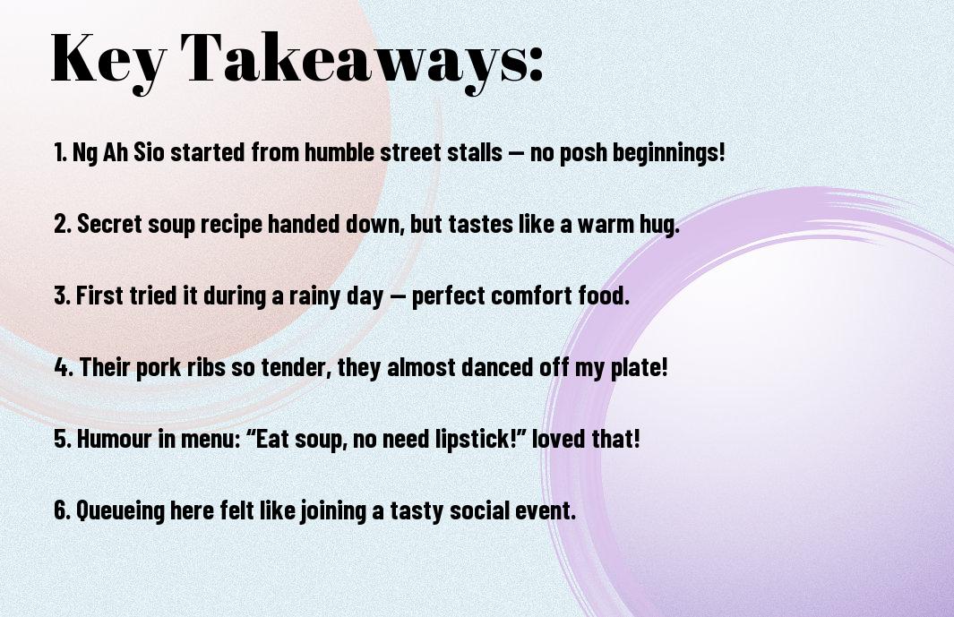Some might say that discovering Ng Ah Sio Bak Kut Teh was like stumbling upon a hidden gem in a treasure hunt. I remember the first day I ventured into this renowned establishment in Singapore, hoping to investigate something extraordinary. Little did I know, I was about to commence on a culinary adventure that would leave my taste buds dancing with joy and my mind concocting wild tales of the broth that beckoned me from the steaming bowl.