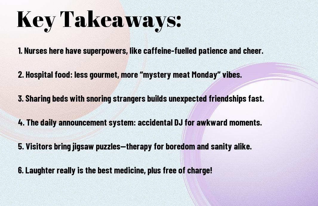 Community spirit is alive and well at the hospital! Between sharing tales of our ailments and exchanging wildly differing opinions on the best hospital food, laughter became our best medicine. I still chuckle at the guy who insisted that his food had a secret ingredient: ‘mystery meat’! Those light-hearted moments turned bland waiting hours into unforgettable escapades.