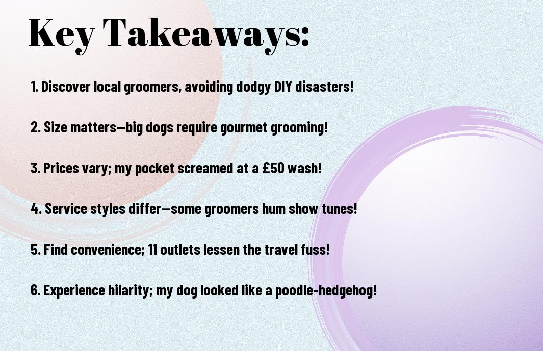 A: Selecting the right grooming service for your furry friend can feel like matchmaking! I’ve tried three different places in my quest to find the best. One place had fantastic reviews, but when I arrived, I found out they only catered to pets with royal titles—note to self, we’re definitely not part of the monarchy. I would suggest considering the size of your dog, as some places specialise in small breeds and others are great for larger dogs. Usually, each outlet will have its services displayed prominently, and word-of-mouth recommendations can also steer you in the right direction. Just be cautious—some services may leave your pet looking like the ‘before’ picture in a makeover show!