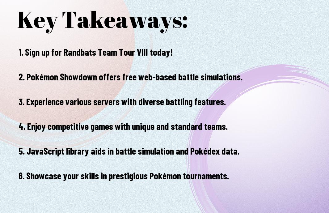 - Sign Up: Participants can sign up for Randbats Team Tour VIII, a prestigious tournament within the Pokémon Showdown community.