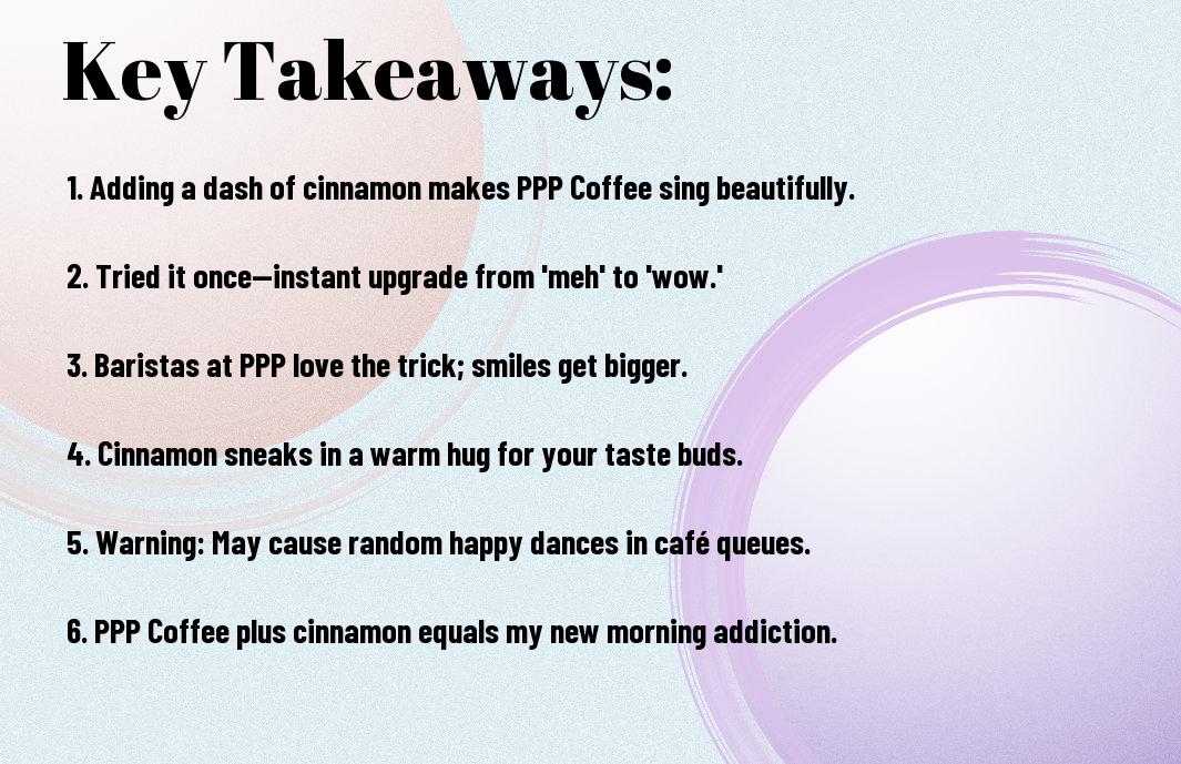When I discovered PPP Coffee, I was blown away by their approach to crafting the perfect cup. However, it’s the little tweaks I’ve made that truly elevate my experience. Whether it’s trying different brewing methods or adding unique flavour infusions, every sip becomes an adventure! Who knew a sprinkle of cardamom could turn a mundane mocha into a delightful concoction worthy of a coffee journal entry? Let’s look into some techniques that will make your next visit to PPP feel like a divine experience!