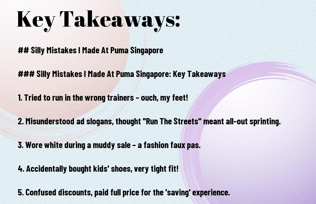 You won’t believe the shenanigans I got up to at Puma Singapore! The experience was filled with hilarious mishaps, ranging from misinterpreting a size chart for an almanack to awkwardly attempting to justify my mismatched trainers. Join me as I recount the top 10 silly mistakes I made during my adventures in the store, guaranteed to leave you chuckling and perhaps even learning a few things from my mistakes! So, lace up your trainers, and let’s examine the hilarity!