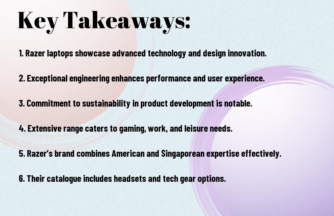As you browse through Razer’s extensive catalogue of innovative tech gear, it’s worth considering the balance between functionality and style. These laptops are designed for those who demand the best, and they seamlessly integrate into both professional and recreational environments. By choosing Razer, you’re not just opting for performance; you’re investing in a brand that embodies passion and dedication to advancing technology. So go ahead, explore your options, and find the perfect gear that fits your unique lifestyle!