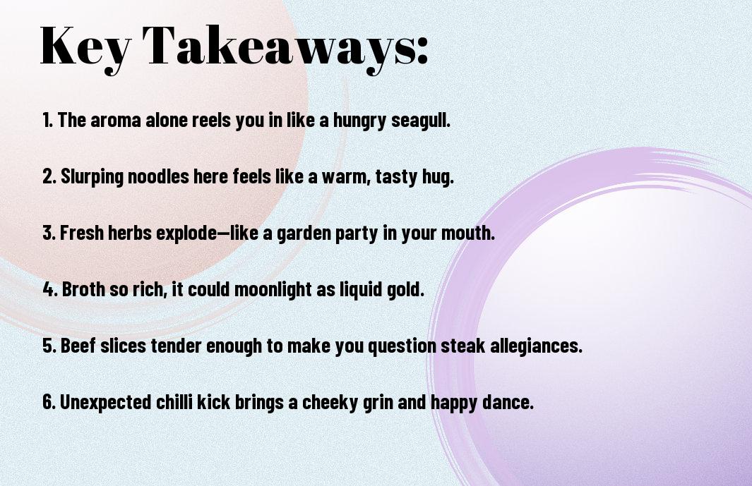 As I ventured into Taste of Vietnam Pho, I truly appreciated the artistry involved in assembling the perfect bowl of pho. It’s like watching a culinary ballet—noodles cascading gracefully, herbs tumbling in, and the rich broth pouring like a warm hug. Each ingredient seems to know its place, coming together to create a delightful symphony of flavours. Honestly, I could watch it for hours, but then again, I’d rather be slurping on my bowl than playing the role of a food critic!