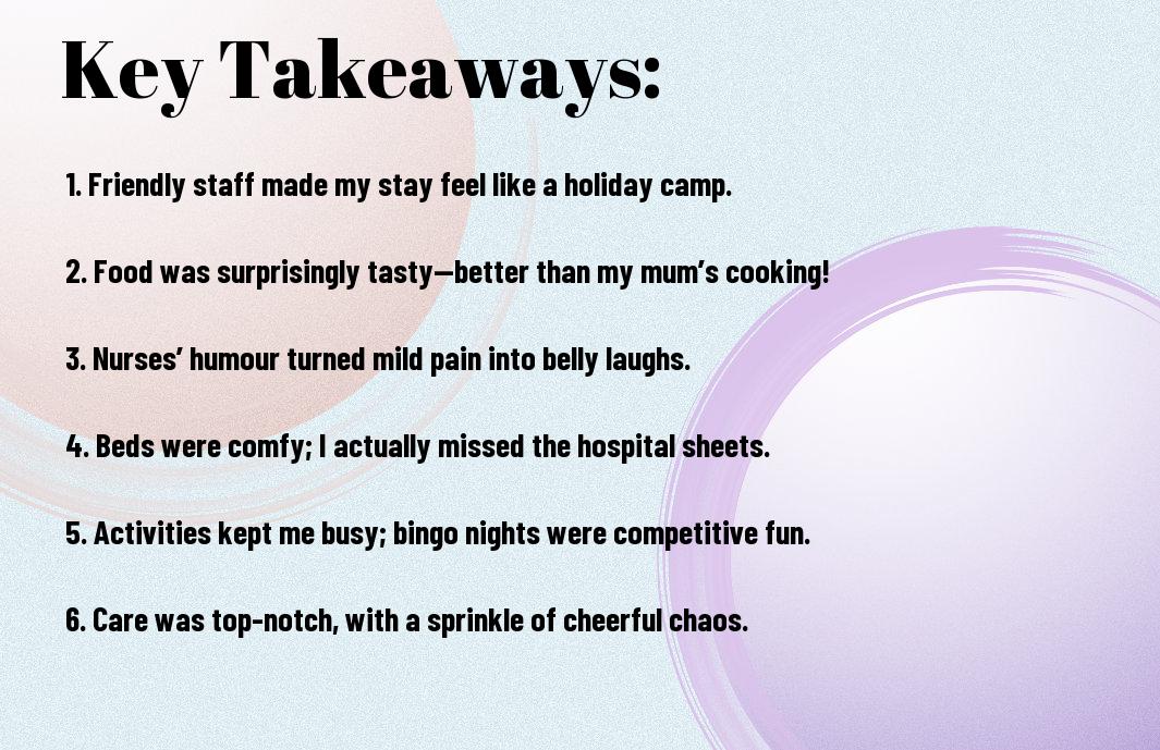 With every chuckle, I realised that humour has a knack for easing tension. Picture the ward buzzing with laughter as a couple of us compared our mismatched hospital socks while pretending to be fashion critics! It’s in those little peculiar moments of joy that you see the human side of healthcare, reminding us that we’re all just a little more alike amidst the seriousness of it all.
