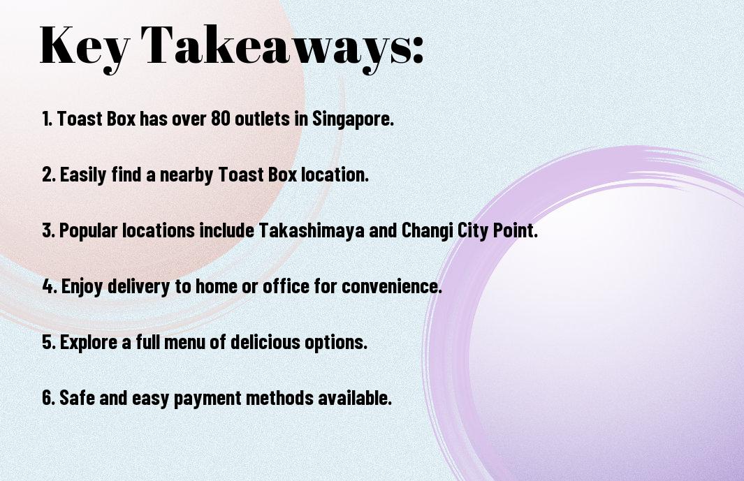 Many of you might be wondering where to find the perfect spot to indulge in some delightful Toast Box offerings. Each outlet has its own unique charm and ambiance, making your visit memorable. With a variety of locations scattered across Singapore, you’re sure to find the ideal outlet that fits your needs and cravings.