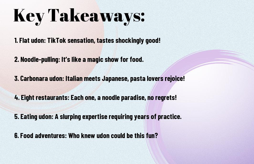 Udon, my dear readers, is the sort of noodle that can turn an ordinary meal into a joyful experience! I recently commenced on a noodle adventure that took me from TikTok-viral flat udon, where I almost dropped my phone filming, to hand-pulled wonders that had me wondering why I ever settled for supermarket packets. And let’s not even talk about the carbonara udon – who knew Italian and Japanese cuisines could have such a delightful love affair? Join me as I explore eight restaurants, each with a story even funnier than my attempts at chopstick proficiency!