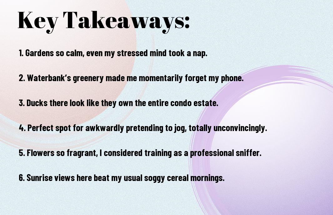 - With various flora and tranquil water features, the gardens serve as a reminder of nature’s beauty. Once, I thought I spotted a rare bird; it turns out it was just a pigeon strutting about with more confidence than I had that day! Nature can be quite playful, can’t it?